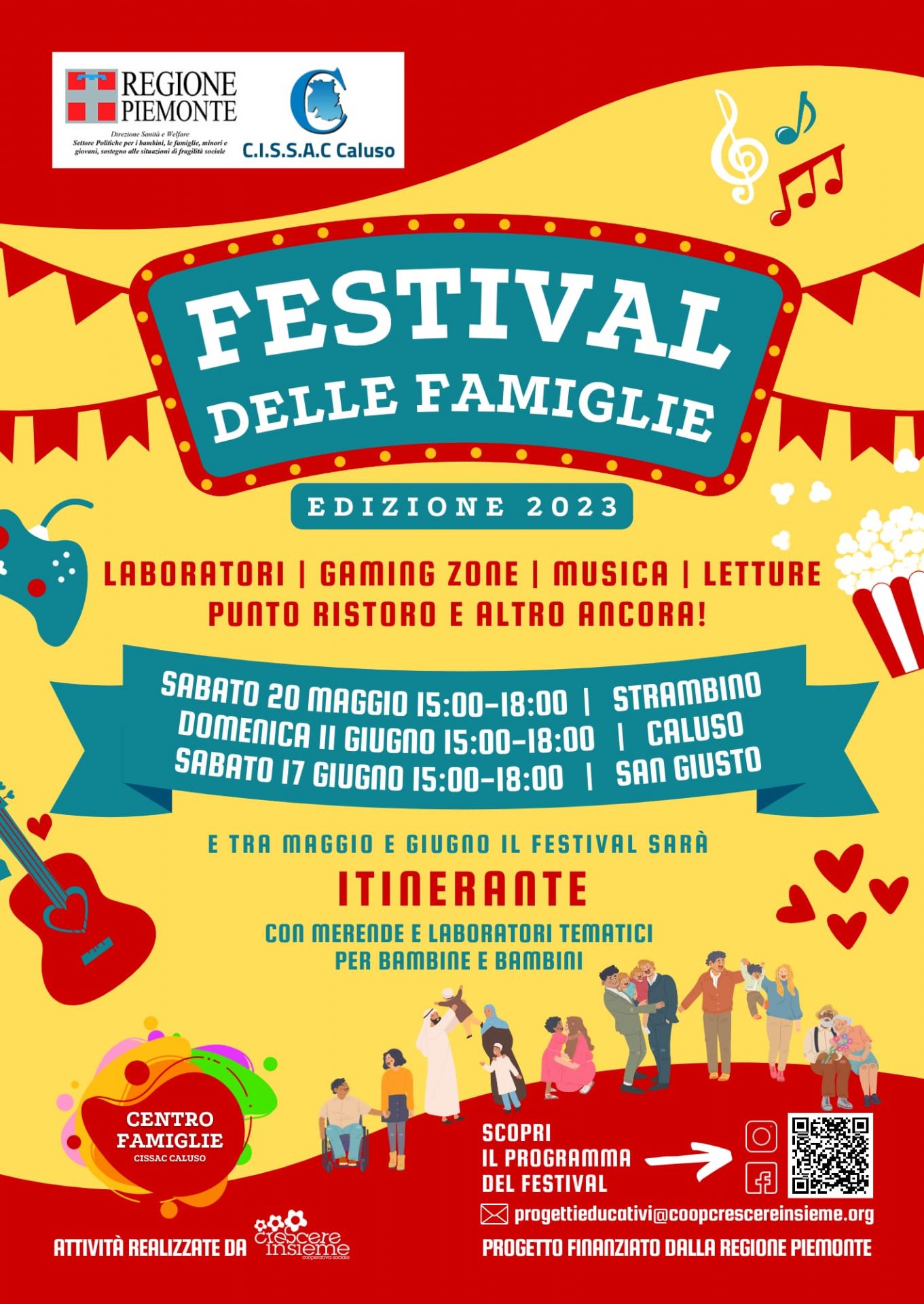 Il CISSAC propone per il secondo anno consecutivo il Festival delle famiglie, tre giornate di festa per i bambini e i loro genitori , con spettacoli , laboratori, giochi gratuiti, a Strambino, Caluso, San Giusto Canavese.