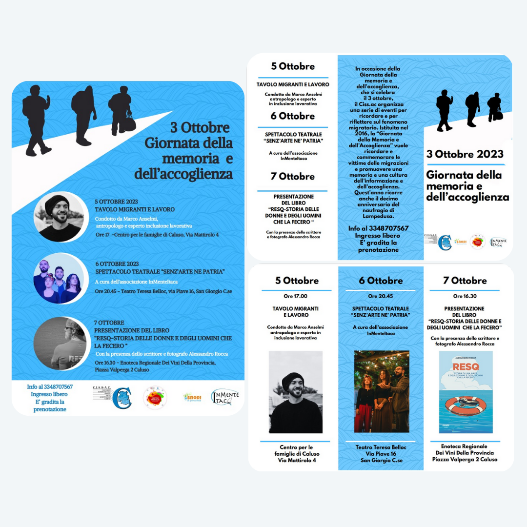 In occasione della Giornata della memoria e dell'accoglienza, che si celebra il 3 ottobre, il Cissac organizza una serie di eventi per ricordare e per riflettere sul fenomeno migratorio.