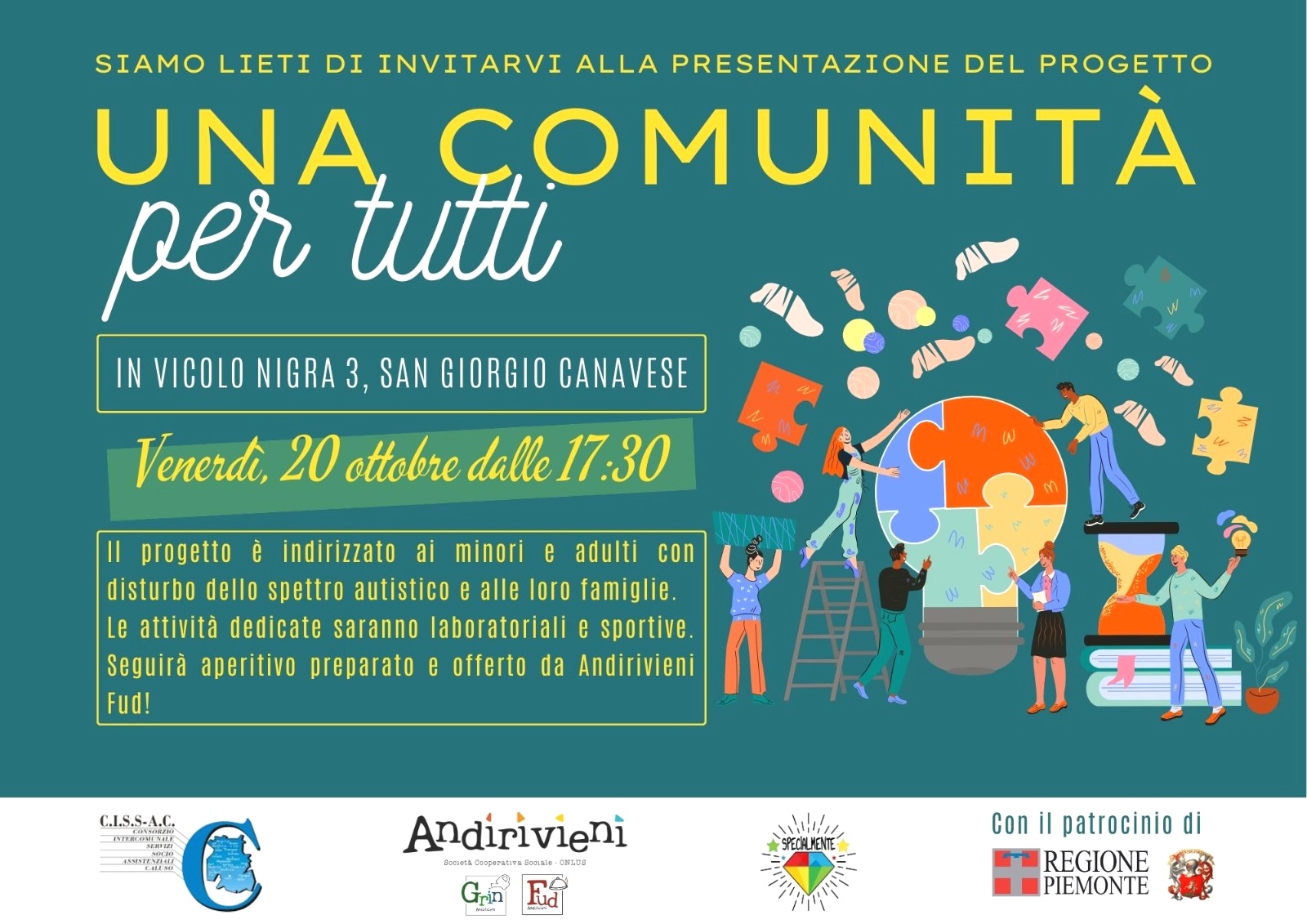 Il progetto è indirizzato ai minori e adulti con disturbo dello spettro autistico e alle loro famiglie, residenti nei comuni del C.I.S.S.A.C. di Caluso.