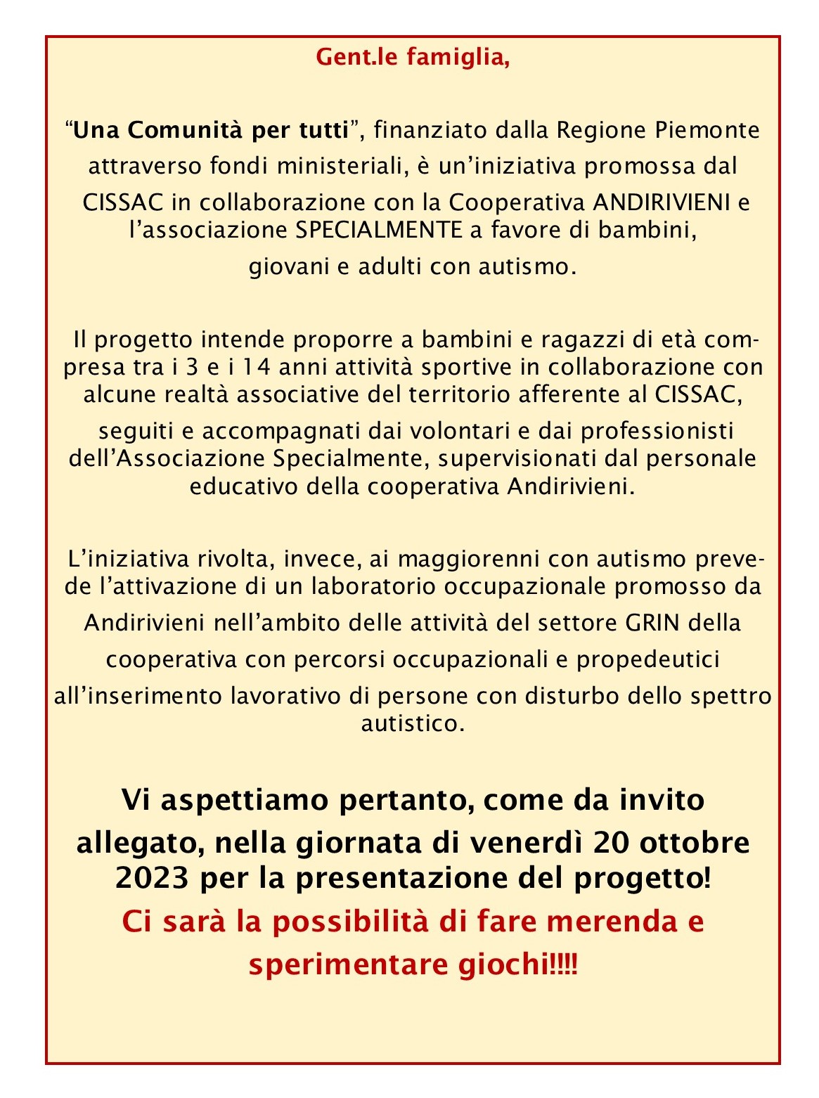 Il progetto è indirizzato ai minori e adulti con disturbo dello spettro autistico e alle loro famiglie, residenti nei comuni del C.I.S.S.A.C. di Caluso.